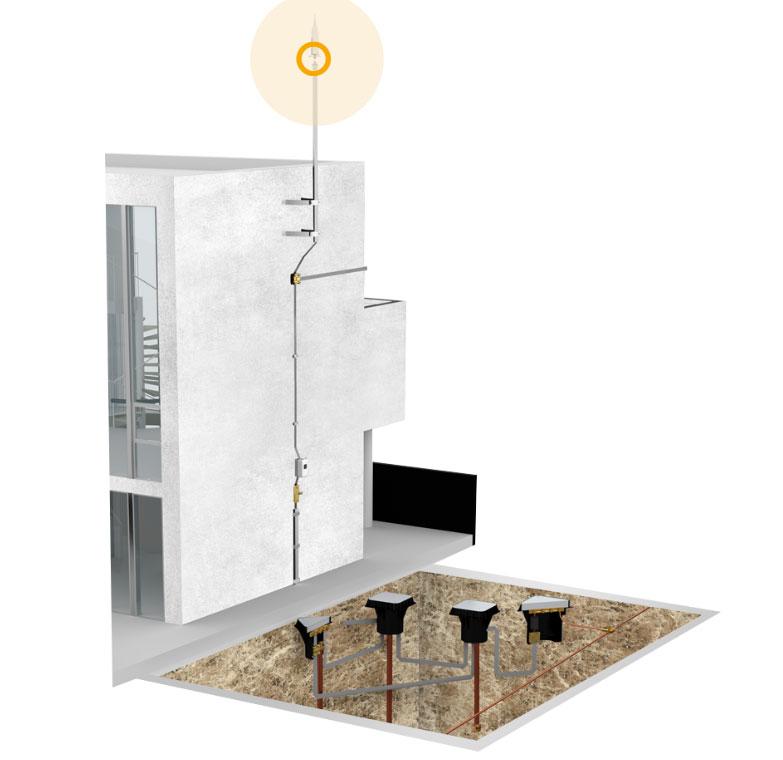 1- (Radius protection) 107 m for the duration of (10/350µs).